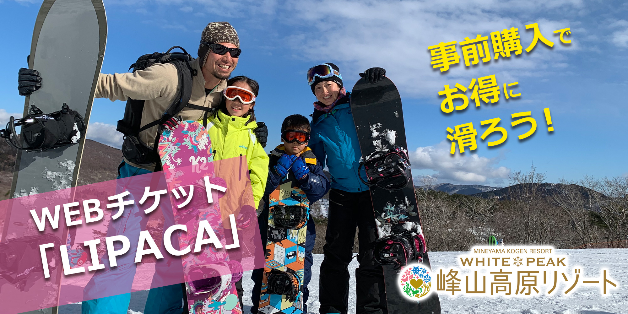 ※今シーズンから今まで通り当日QRコードで発券するICカード(LIPACA)と、スマホをリフトゲートにかざすだけでリフトが利用できるスマホチケット(SkiWALLET)の2種類ございます。スマホチケット(SkiWALLET)は1日券のみの販売です。お間違えないようお願いいたします。